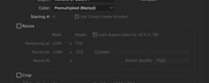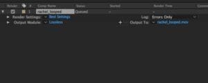 To allow photoshop to output our GIF with transparency we need to export the video file from After Effects, ensuring that we include the alpha channel. Start by exporting the file and adding to After Effects render queue (we won’t be using Adobe Media Encoder for this), then click on the quality setting of the new item (mine defaults to Lossless) and update the settings to include the alpha channel.